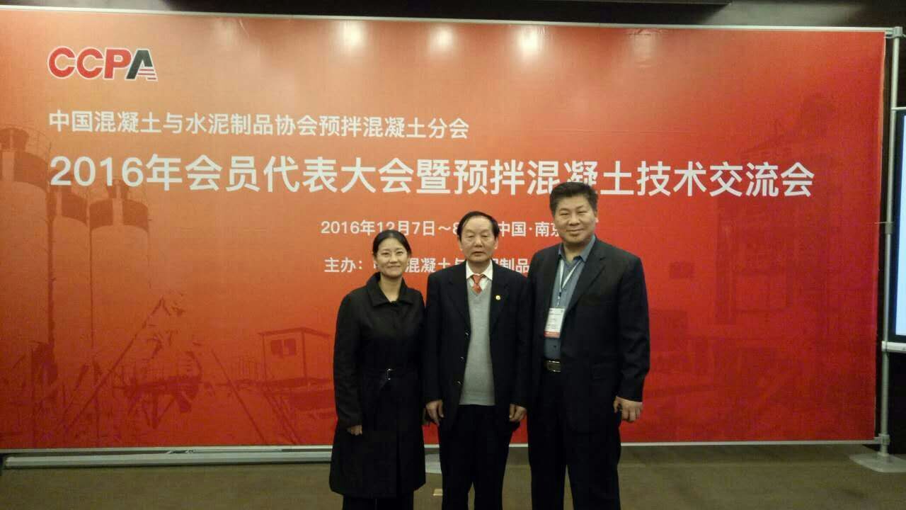 中國(guó)混凝土與水泥制品協(xié)會(huì)預(yù)拌混凝土分會(huì)2016年會(huì)員代表大會(huì)暨預(yù)拌混凝土技術(shù)交流會(huì),于2016年12月8日在江蘇南京召開(kāi),中國(guó)工程機(jī)械工業(yè)協(xié)會(huì)混凝土機(jī)械分會(huì)符忠軒會(huì)長(zhǎng)及砼商網(wǎng)負(fù)責(zé)人王雁瓴女士受邀參加了這次代表大會(huì)暨技術(shù)交流會(huì)。