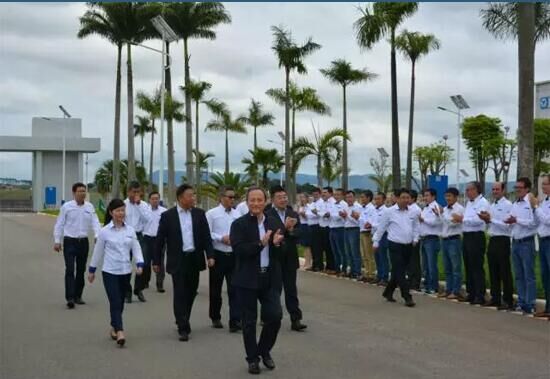 巴西時間2015年5月31日中國駐巴西大使李金章、駐巴西使館武官許有明、公使銜經(jīng)濟商務參贊夏曉玲等一行視察了徐工巴西制造基地。李大使感慨地說:“我很震撼!徐工是我見過巴西當?shù)匾?guī)模最大的中國制造企業(yè),我為在巴西土地上能有一個投資規(guī)模這么大,規(guī)劃建設這么好,而且非?,F(xiàn)代化的中國制造工廠而感到自豪,特別是徐工是國企是共和國的長子,是民族工業(yè)的脊梁,是中國制造走出去的先鋒代表,在巴西扎根的各項措施這么到位,很好地代表了中國形象?!?
