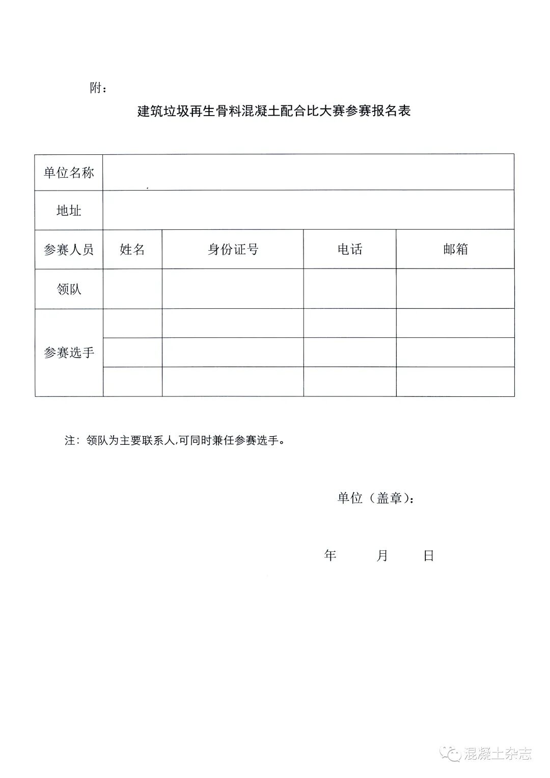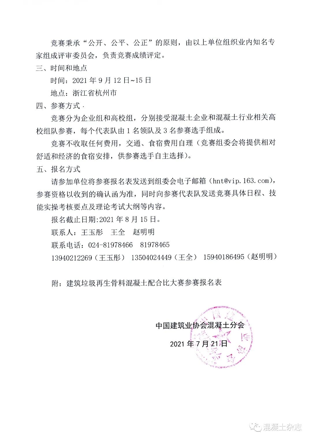 · 競(jìng)賽分為企業(yè)組和高校組,分別接受混凝土企業(yè)和混凝土行業(yè)相關(guān)高校組隊(duì)參賽,每個(gè)代表隊(duì)由1名領(lǐng)隊(duì)及3名參賽選手組成。