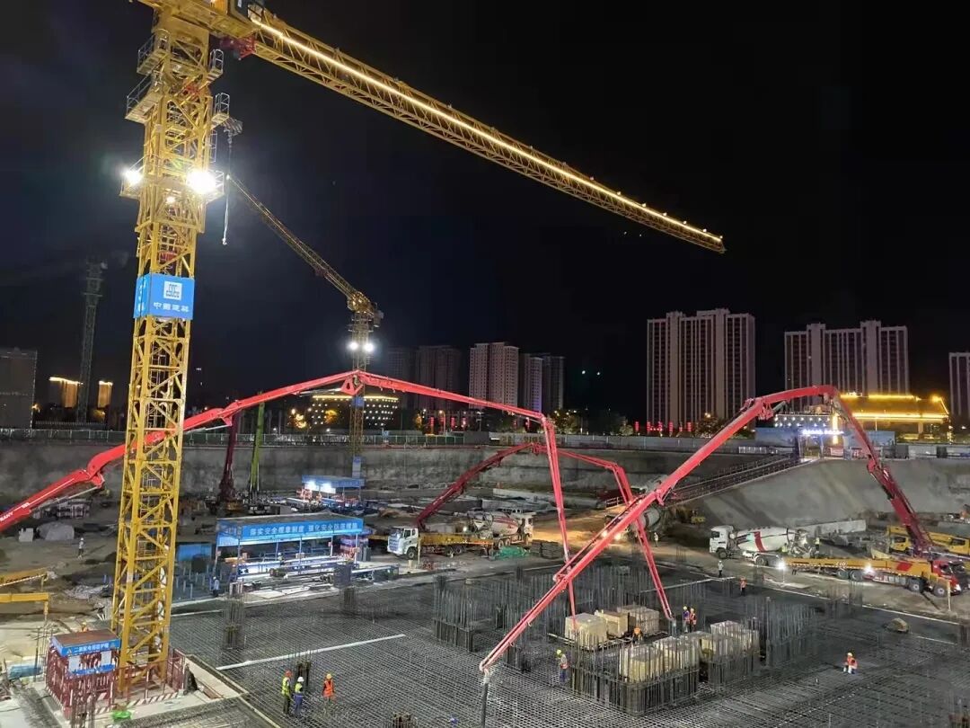 此次施工創(chuàng)造了天水市單次筏板混凝土澆筑量最大及澆筑厚度最大等多項(xiàng)記錄,標(biāo)志著中深財富中心超高層主體施工已全面展開。1號樓預(yù)計將在10月份實(shí)現(xiàn)超8000m3澆筑。