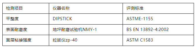 參評項目包括混凝土面層地坪、水泥砂漿面層地坪、整體樹脂地坪系統(tǒng)三大類(下分13種細分地坪)。“WOCA 地坪獎-亞洲賽區(qū)”(WOCA AWARDS)執(zhí)行國際先進的檢測檢驗標(biāo)準(zhǔn),對候選項目進行現(xiàn)場性能檢測,依據(jù)三個維度——平整度(FF/FL Testing)、表面耐磨度(BCA Abrasion Testing)、面層粘接強度(Pull-off Adhesion Testing)的測評數(shù)值加權(quán)系數(shù)后得出最終分數(shù)進行評選。