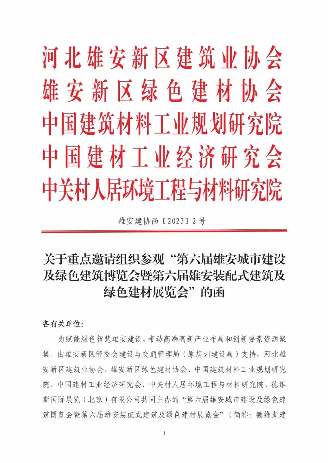 請簽收|關(guān)于重點邀請組織參觀“第六屆雄安建博會”的函