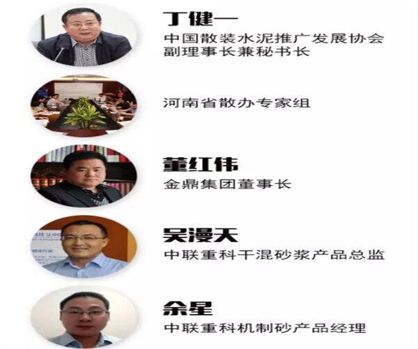 此次方案的參與實施者對有中國散裝水泥推廣發(fā)展協(xié)會副理事長兼秘書長丁健一;河南省散辦專家組;金鼎集團董事長董紅偉;中聯(lián)重科干混砂漿產(chǎn)品總監(jiān)吳漫天;中聯(lián)重科機制砂產(chǎn)品經(jīng)理余星