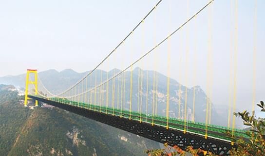 中聯(lián)重科塔機(jī)產(chǎn)品參建世界第一高橋龍?zhí)逗犹卮髽?,堪稱(chēng)“天路中的天橋”。大橋主跨900米,索塔頂距谷底650米,橋面距谷底560米,相當(dāng)于200層樓高,比目前世界最高橋法國(guó)米約大橋分別高307米和290米。大橋的另一端距離公路隧道23米,借助火箭彈發(fā)射先導(dǎo)索過(guò)峽谷,開(kāi)創(chuàng)了國(guó)內(nèi)乃至世界建橋史上的先河。龍?zhí)逗犹卮髽虻淖畲髽蚨崭哌_(dá)178米,創(chuàng)下連續(xù)鋼構(gòu)箱梁橋墩高度的世界之最,被譽(yù)為“世界第一高懸索橋”。