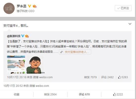 “扶老人險(xiǎn)”一上線(xiàn)立即引起了網(wǎng)友們的熱議,就連羅永浩老師也在微博上公開(kāi)力挺,而據(jù)支付寶方面的統(tǒng)計(jì),該險(xiǎn)種開(kāi)售3天便有2.6萬(wàn)人投保,可見(jiàn)其關(guān)注度。