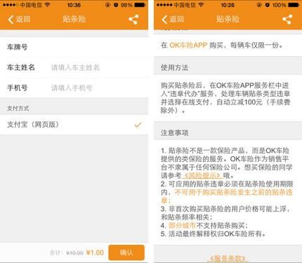 貼條險(xiǎn)是由《OK車(chē)險(xiǎn)》在今年3月推出的險(xiǎn)種,用戶(hù)需支付1元,若愛(ài)車(chē)不幸被貼條可減免100元,保障期為一年,使用后可重復(fù)購(gòu)買(mǎi)但價(jià)格會(huì)相應(yīng)提高。這款保險(xiǎn)同樣銷(xiāo)售火爆,幾天時(shí)間即賣(mài)出了上萬(wàn)份,《OK車(chē)險(xiǎn)》也因此名聲大噪。