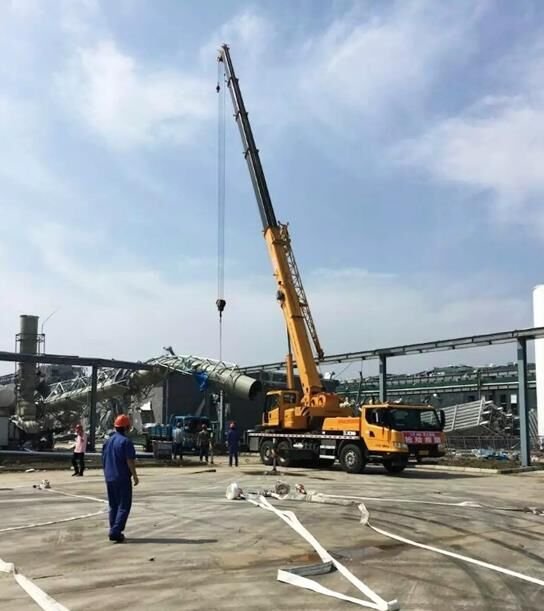 23日下午,由6名人員、4臺起重機、1臺挖掘機和兩輛服務車組成的救援小分隊趕到鹽城阜寧縣災區(qū),緊急與當?shù)鼐仍渚⒄〉寐?lián)系,聽從統(tǒng)一指揮,全力投入現(xiàn)場搶險。