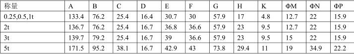 額定稱量        250kg~5t