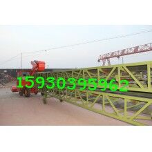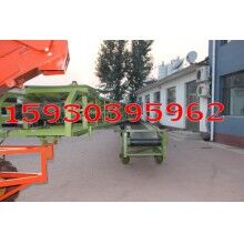 組合形式為:底盤有駕駛室和方向盤,有自動行走功能;扒谷機安裝在底盤前部,可升降;組合輸送機安裝在底盤后部,可相對底盤左右旋轉,輸送機部分又分為上下兩層輸送機,上層輸送機的終端用轉盤和跑輪與下層輸送機連接,兩者可相對旋轉和移動,扒谷機部分又可以和上層輸送機90度范圍內(nèi)轉向。