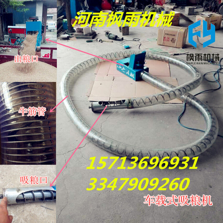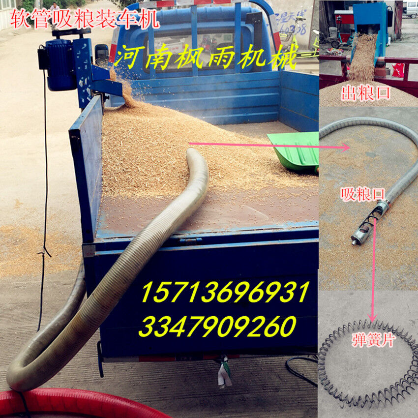 新型吸糧機(jī),新型軟管吸糧機(jī),在原有的基礎(chǔ)上改進(jìn)了螺旋片加厚,不易斷,機(jī)頭機(jī)尾采用噴塑工藝,電機(jī)改為滑板式工藝,拆卸方便,省時(shí)省工,輕松搞定,軟管采用耐寒管,握不斷,壽命長(zhǎng),機(jī)尾為錐形設(shè)計(jì),插入糧堆更方便,功率采用3kw,更有效的輸送糧食