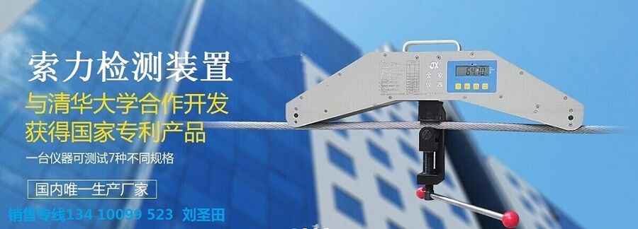 ※   索張力儀的特點操作簡便,在不損壞原結構的前題下可快速、準確的得到測量結果。儀器本身體積小,重量輕。攜帶方便。本公司研制的張力測試儀適用于建筑玻璃幕墻行業(yè)、高速鐵路、電力行業(yè)、索道運輸行業(yè)、橋梁等。儀器結構簡單、性能穩(wěn)定、測量精度高、本產(chǎn)品已經(jīng)獲得專利授權,并完全符合國家和國際標準,是全國唯一一家生產(chǎn)預應力鋼索張力測試儀的廠家。我們的索力測定儀已經(jīng)在幾百項工程中使用過,實踐證明效果是良好的。
