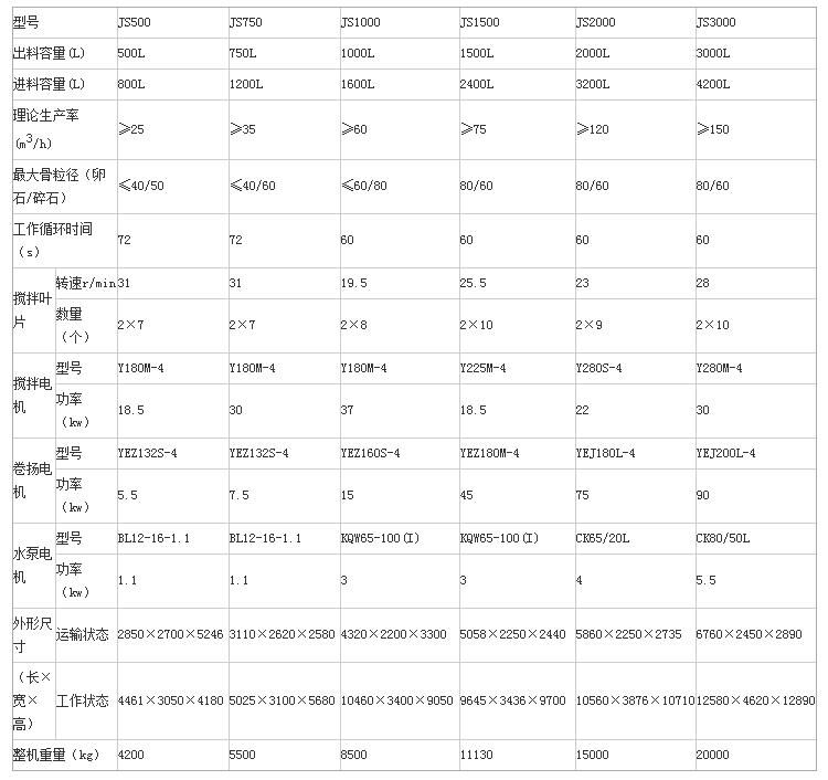 JS2000攪拌機(jī)詳細(xì)配置參數(shù),億立公司出品