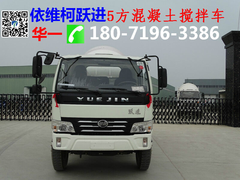 依維柯躍進開拓5方混凝土攪拌車介紹:單排白色駕駛室,發(fā)動機玉柴130馬力發(fā)動機,145前后橋,8.25-20尼龍?zhí)ィ?小八檔帶高低檔、軸距3300mm。