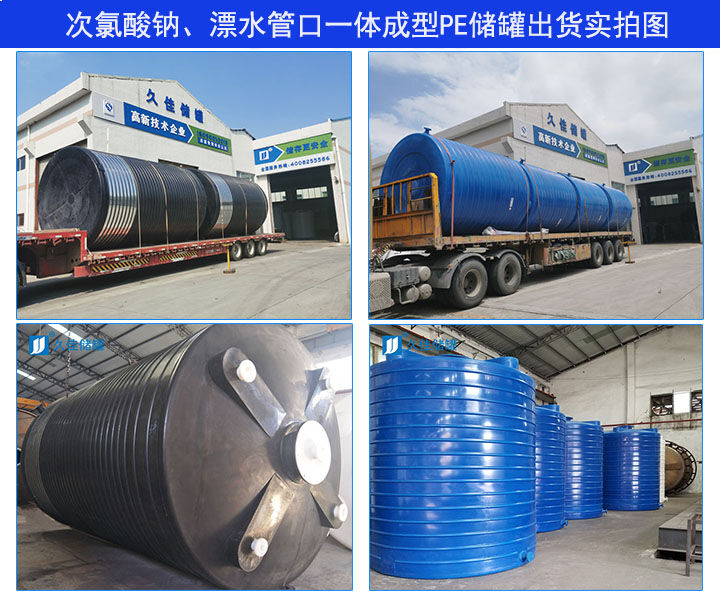 次氯酸鈉,化學式NaClO,是鈉的次氯酸鹽。又名漂白水,漂水。次氯酸鈉與二氧化碳反應產(chǎn)生的次氯酸是漂白劑的有效成分,強氧化劑,用作漂白劑、氧化劑及水凈化劑;用于造紙、紡織、輕工業(yè)等,具有漂白、殺菌、消毒的作用。次氯酸鈉溶液是弱堿性的,不會對PE塑料罐有腐蝕;30立方次氯酸鈉儲罐  久塑牌PE儲罐廠家  水處理 水務漂白水儲罐材質(zhì)PE是聚乙烯塑料,常溫下耐酸堿性能很好,完全可以裝次氯酸鈉。