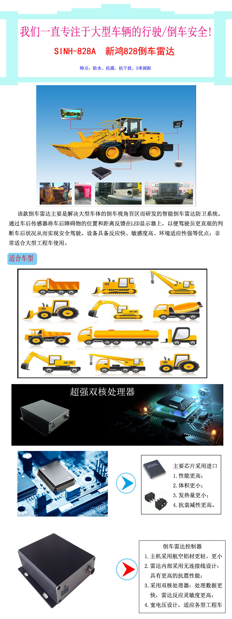 歸屬行業(yè):鑫鴻528A倒車?yán)走_(dá),工程車倒車?yán)走_(dá)5米探測,SINH-528A鏟車專用倒車?yán)走_(dá)