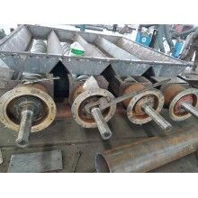 一般情況下,出廠總裝時將螺旋輸送機中間節(jié)按長度長短依次排列,較長的中間節(jié)靠近頭節(jié),相同長度的中間節(jié)則挨在一起,如果有特殊要求,則在訂貨時給出排列順序。 在螺旋輸送機頭節(jié)內(nèi)裝有支推軸承承受軸向力,在中間節(jié)和尾節(jié)內(nèi)裝有用軸承支承螺旋軸,此外,在螺旋輸送機尾節(jié)內(nèi)還裝有可軸向移動的徑向軸承以補償螺旋軸長度的誤差和適應(yīng)溫度的變化。