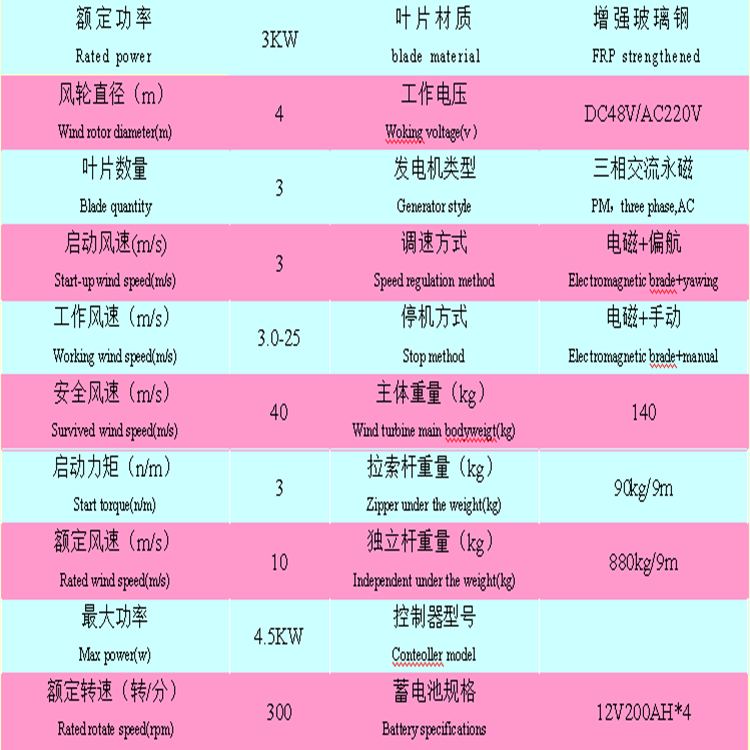 sc-3kW風(fēng)力發(fā)電機技術(shù)參數(shù)
