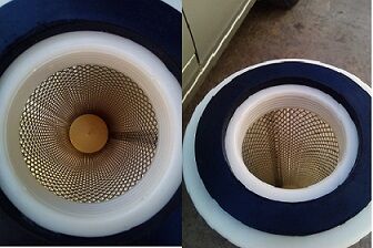 除塵濾筒構(gòu)造:除塵濾筒由經(jīng)過成型加工處理的濾材,支撐骨架,上下端蓋,橡膠密封圈組成。通過強(qiáng)力膠水將濾紙、支撐骨架,上下端蓋,粘連成一個完整的產(chǎn)品——濾筒。