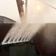 其原理就是微米級干霧抑塵機(jī)產(chǎn)生不通顆粒的水和霧狀水,與空氣中的不同力度的顆粒進(jìn)行吸附和包裹,后自動結(jié)合受重力影響落到運輸皮帶機(jī)上。