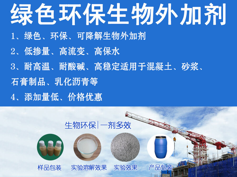 4、配伍性良好:本產(chǎn)品屬高分子生物聚合物,耐酸堿性強(qiáng),不與組分中的其他材料發(fā)生反應(yīng),與所有常用的摻料包括萘、三聚氰胺以及聚羧酸類外加劑都可兼容。