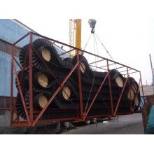 擋邊和隔板的底部和基帶是工廠按國際標(biāo)準(zhǔn)經(jīng)一次硫化加二次硫化結(jié)合而成。擋邊和隔板的高度可以達(dá)10-400mm,在裙帶中間,我廠增加了高強(qiáng)力抗拉伸織物層,加強(qiáng)了裙邊的抗撕裂強(qiáng)度,大大延長了裙邊的使用壽命