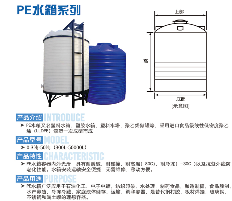 化工儲(chǔ)罐容器產(chǎn)品優(yōu)點(diǎn):一次成型內(nèi)外光滑,具有良好的衛(wèi)生性與抗紫外線(xiàn)能力,耐撞擊、抗強(qiáng)震、不易老化、不長(zhǎng)水藻、易清洗、防鼠、防白蟻、安裝移動(dòng)方便。廣泛用于高層筑二次供水、蓄水、水處理凈化設(shè)備配套、電子行業(yè)、工業(yè)用冷卻水、化工制劑、化工原料、各種油品、飲品的存儲(chǔ)、運(yùn)輸。這種塑料儲(chǔ)罐在生產(chǎn)中沒(méi)有使用任何添加劑、塑料填料,完全由本公司獨(dú)特配方改性增加聚乙烯(PE)材料加工制作而成,從儲(chǔ)罐罐體到進(jìn)出料口、人孔、法蘭等都為整體一次成型無(wú)焊接縫,所以?xún)?chǔ)罐還具有無(wú)焊接縫、不滲漏、無(wú)毒性、重量輕、抗老化、抗沖擊、耐腐蝕、壽命長(zhǎng)、符合衛(wèi)生標(biāo)準(zhǔn)等優(yōu)點(diǎn),其價(jià)格低于不銹鋼儲(chǔ)罐、普通玻璃鋼儲(chǔ)罐、聚丙烯儲(chǔ)罐、聚氯乙烯貯罐,自然條件下的使用壽命更長(zhǎng)。
