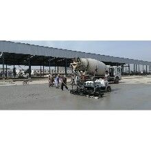 采用機器施工流程:首先通過基準(zhǔn)點,找到標(biāo)高,調(diào)整激光發(fā)射器控制標(biāo)高。然后直接倒混凝土,機器一次性刮平、提漿、壓實。實現(xiàn)大面積攤鋪。