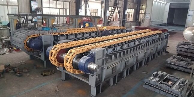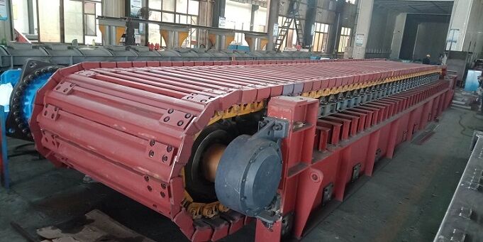 由于板喂機是通過鏈輪、鏈條、鏈板、傳動等一系列全鋼結構的剛性機架將物料拖出庫底的。所有的料倉壓力由板式給料機承擔,避免的由于料倉壓力過大把皮帶秤壓壞現(xiàn)象。