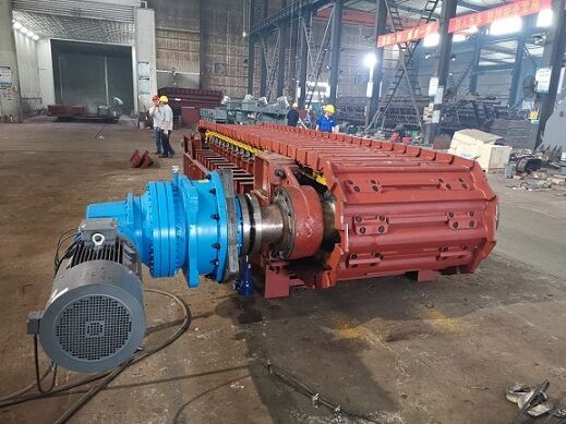 3) 垃圾成分的復(fù)雜性,易抱團(tuán),不易分散,從受料斗中拉出時 ,板式給料機(jī)上料層較厚,易間斷性成堆地掉入下道設(shè)備,給下道設(shè)備帶來新的難題。 為了保證從料斗中拉出的垃圾能均勻地送入下道設(shè)備 ,在板式給料機(jī)頭部卸料位置設(shè)有一均勻撥料滾筒,其左右、 上下位置均可調(diào)整,以保證能均勻布料。