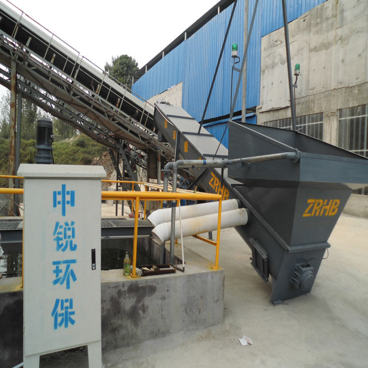 當砂石混凝土進入螺旋砂石分離機時,驅(qū)動水槽中的葉輪在水槽中圓周性轉(zhuǎn)動,從而將水槽中砂石、礦渣顆粒物料在水中攪拌、翻轉(zhuǎn)、淘洗并使受水物料在葉輪中脫水后排出。