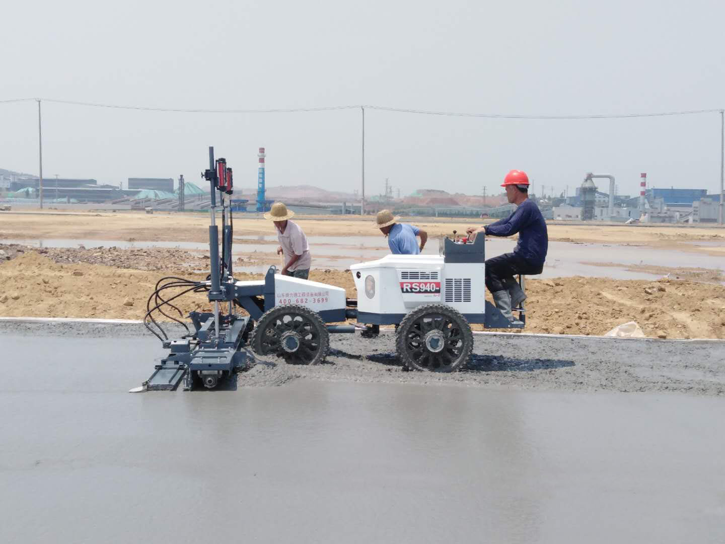 3.奧力德激光整平機施工流程:首先通過基準點,找到標高,調(diào)整激光發(fā)射器控制標高。然后直接倒混凝土,機器一次性刮平、提漿、壓實。實現(xiàn)大面積攤鋪