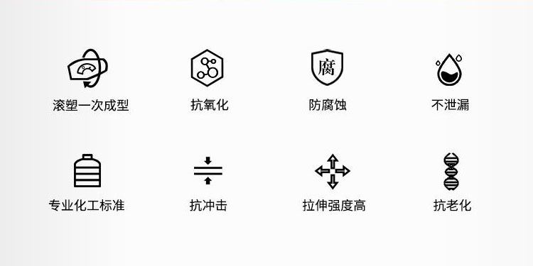1.以進(jìn)口LLDPE為原料,采用滾塑一次成型;