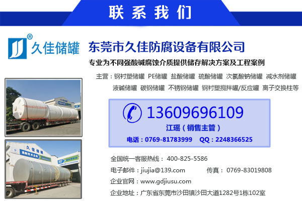鹽酸屬于一元無(wú)機(jī)強(qiáng)酸,工業(yè)用途廣泛。鹽酸的性狀為無(wú)色透明的液體,有強(qiáng)烈的刺鼻氣味,具有較高的腐蝕性,盛有濃鹽酸的容器打開,氣體會(huì)揮發(fā),與空氣中的水蒸氣結(jié)合產(chǎn)生鹽酸小液滴,使瓶口上方出現(xiàn)酸霧。因鹽酸的強(qiáng)腐蝕性,且隨濃度溫度的增加而增加,因此在鹽酸罐的選材上面必須特別嚴(yán)謹(jǐn),一般非金屬對(duì)其有很好的抗腐蝕性,在常溫條件下,可選用性價(jià)比較高的塑料儲(chǔ)罐,久佳塑料儲(chǔ)罐可用盛裝各種濃度的工業(yè)級(jí)鹽酸和試劑級(jí)鹽酸,特別適用于試劑級(jí)鹽酸的儲(chǔ)存。