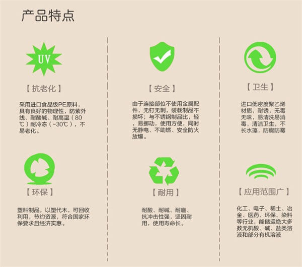 2、久佳儲(chǔ)罐采用進(jìn)口韓國進(jìn)口644線性低密度(LLDPE)原料,韌性和強(qiáng)度均優(yōu)于其他原料,符合中國食品衛(wèi)生檢測標(biāo)準(zhǔn)??商峁┖细褡C、檢測報(bào)告等文件