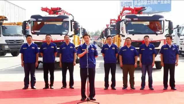 半年時間內(nèi),這已是徐工施維英第7次出口訂單批量發(fā)車儀式。儀式現(xiàn)場人頭攢動、彩旗飄揚、禮炮齊鳴, 一臺臺披戴紅花的混凝土機械設(shè)備就像即將出征的戰(zhàn)士,整齊列隊,等待出征前的檢閱。