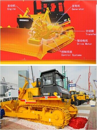 電傳動(dòng)大型礦車(chē)在大型礦山并不鮮見(jiàn),但履帶式推土機(jī)采用電傳動(dòng)型式,在國(guó)內(nèi)尚屬首次,國(guó)機(jī)重工在bauma2014推出了D320E電傳動(dòng)履帶式推土機(jī)。